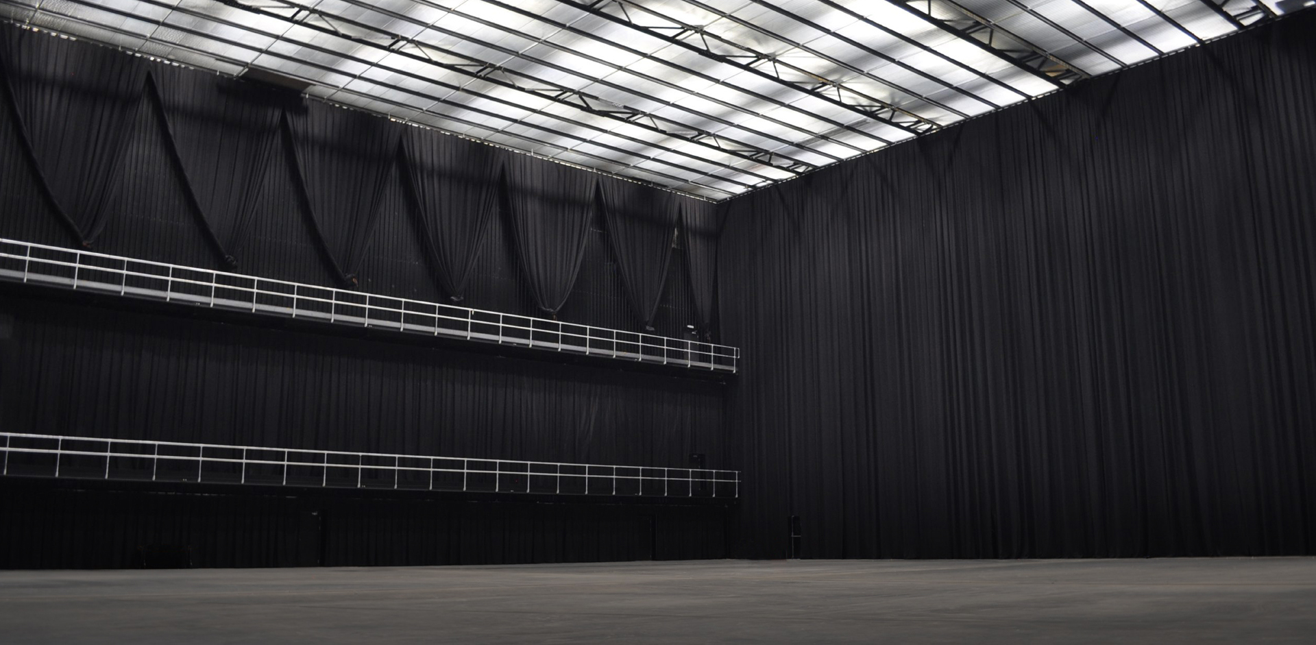 Acoustic, masking and blackout fabrics are essential elements for event and entertainment drapery. These fabrics create a black box effect by incorporating black legs, borders, travellers and tabs, blocking and absorbing light. They also conceal offstage areas and equipment, ensuring the lighting has a strong visual impact and directing the audience’s attention towards the performance.