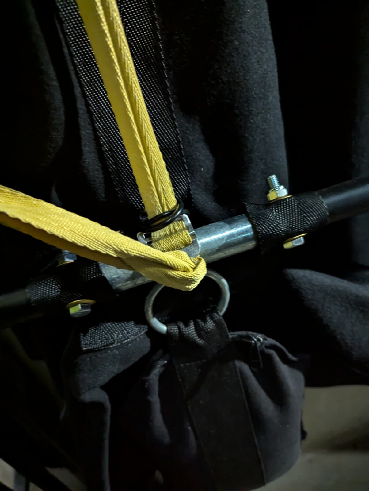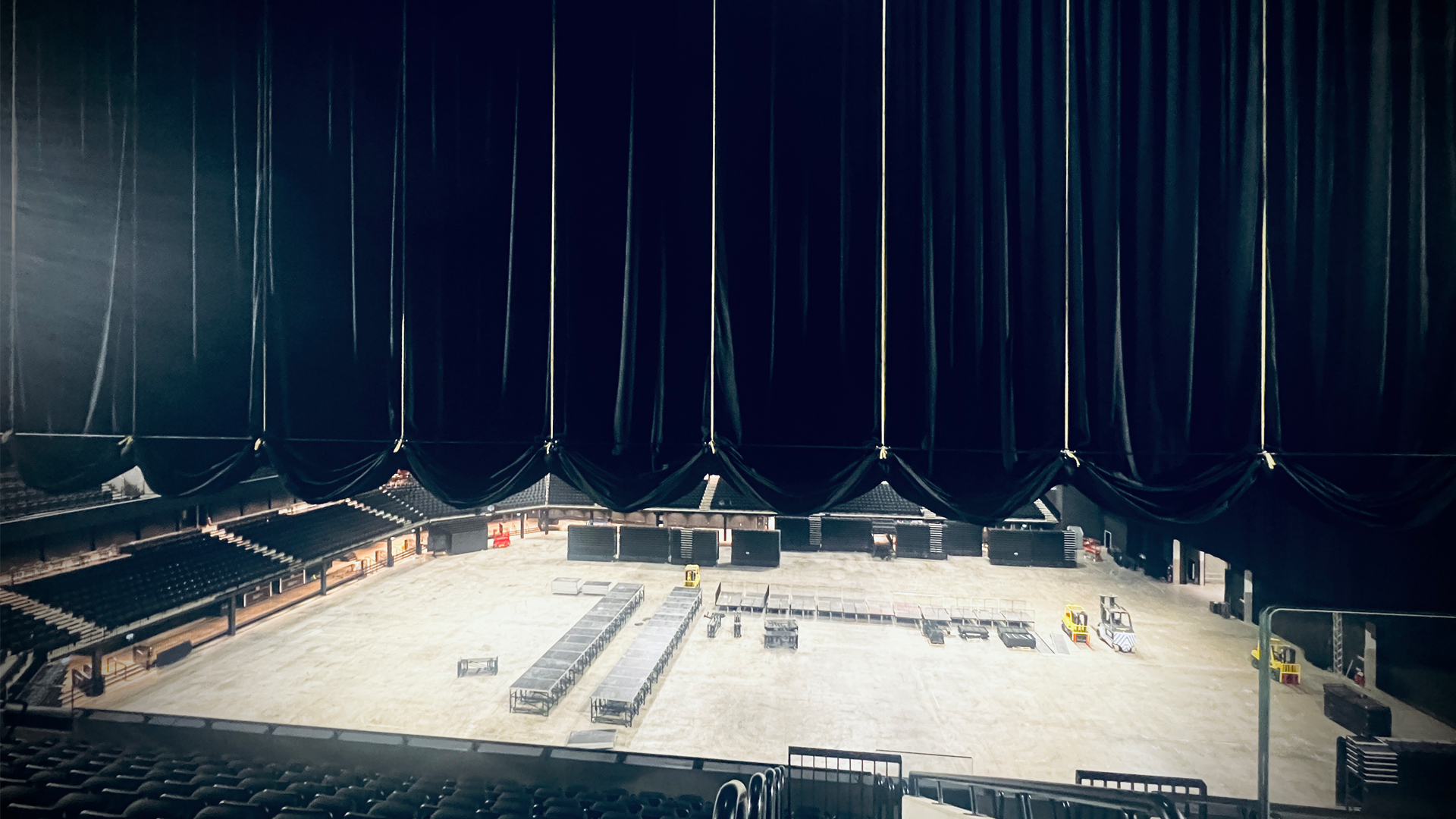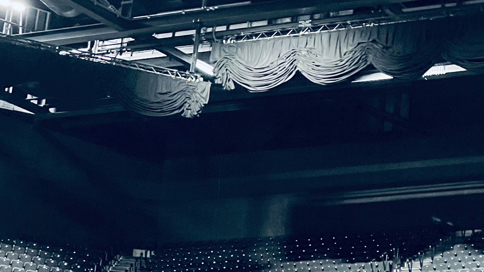 Hung from each Festoon System is J&C Joel’s black IFR Premier Wool Serge (WS090) drapes. The drapes are sewn flat and headed with ties for a secure attachment. On the rear face of the drapes, “D” rings are sewn in line with Kevlar drop lines to guide them through.