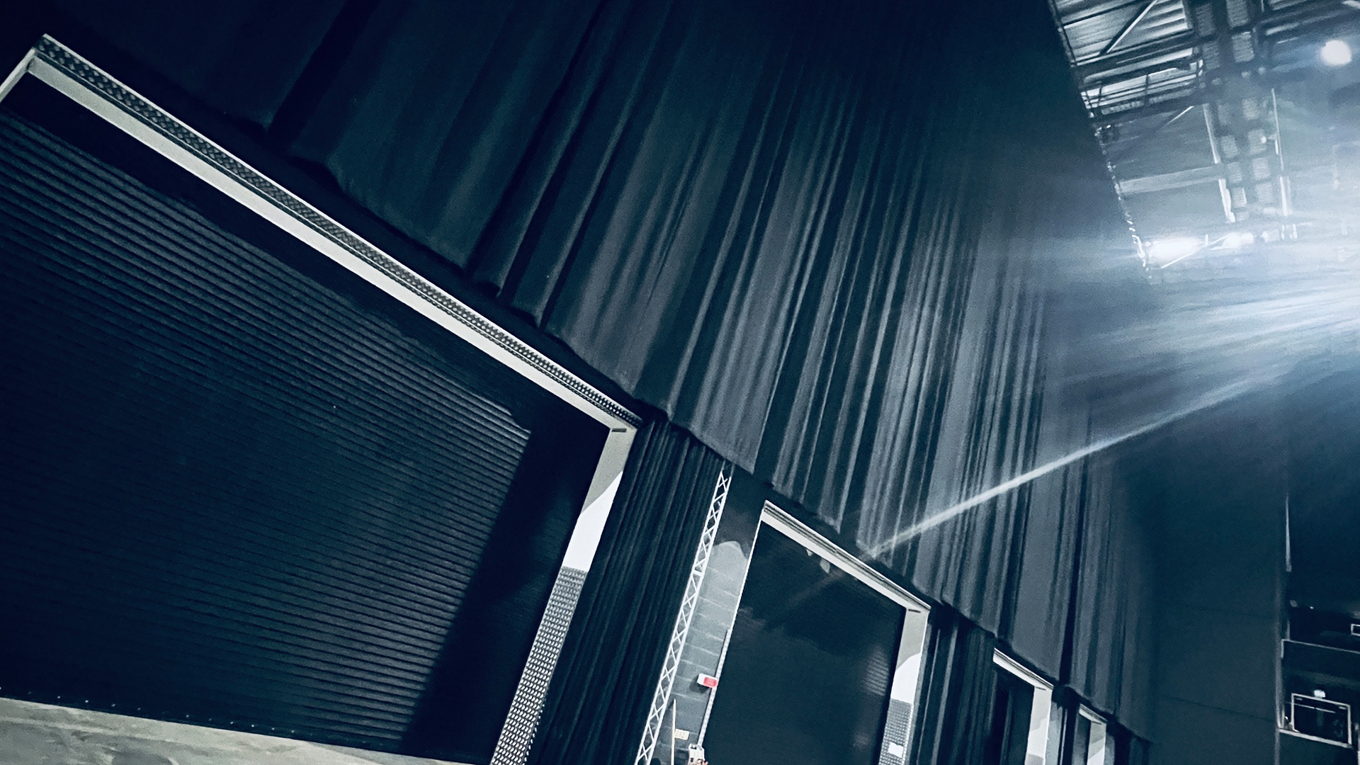 J&C Joel provided 10 perimeter divider drapes. These drapes can be raised and lowered via our Festoon Systems. Each Festoon System consists of a double-braked motor gearbox, drive shafts, bearings and pulleys. These are mounted within a custom 0.3m Box Truss.