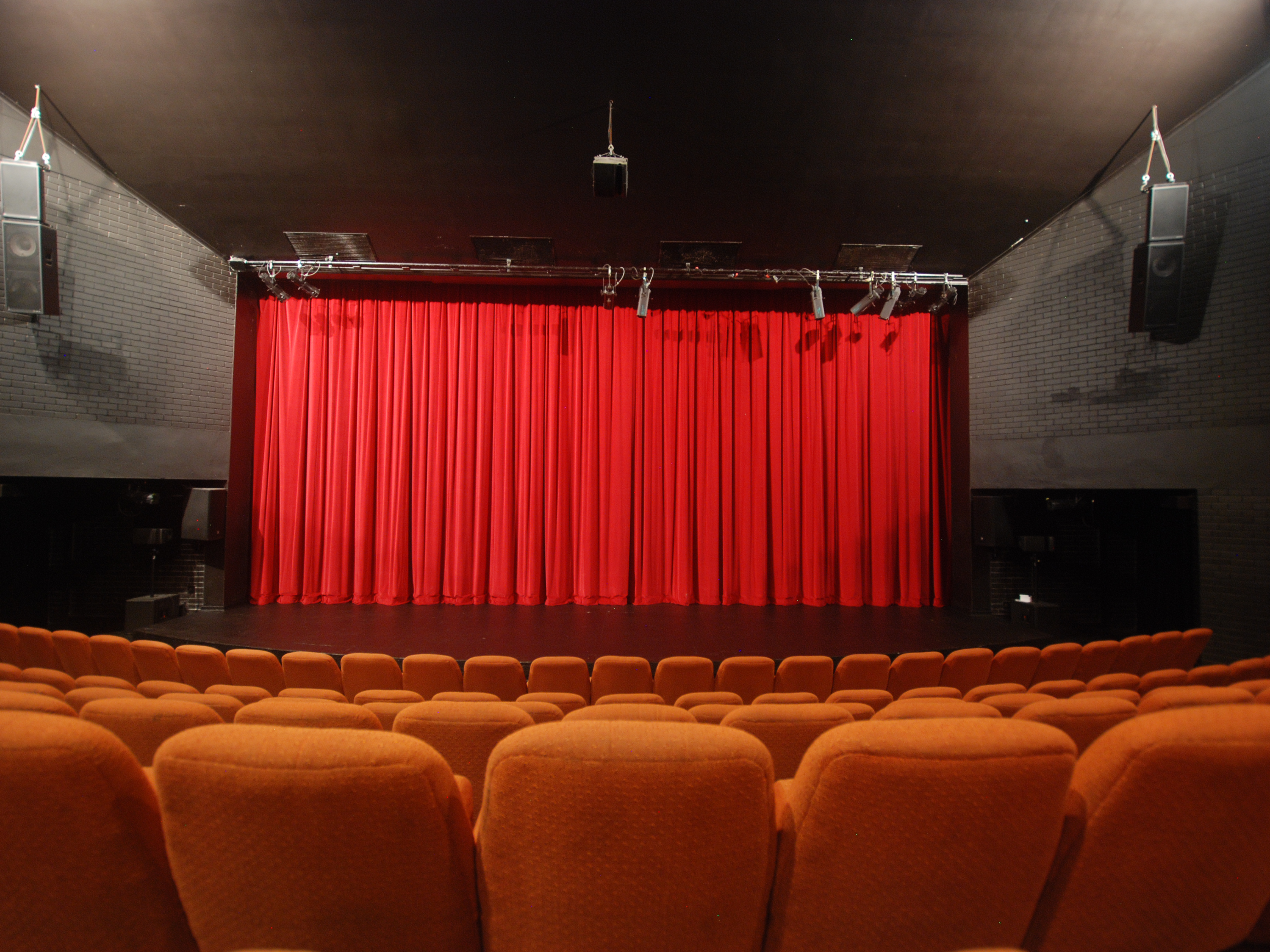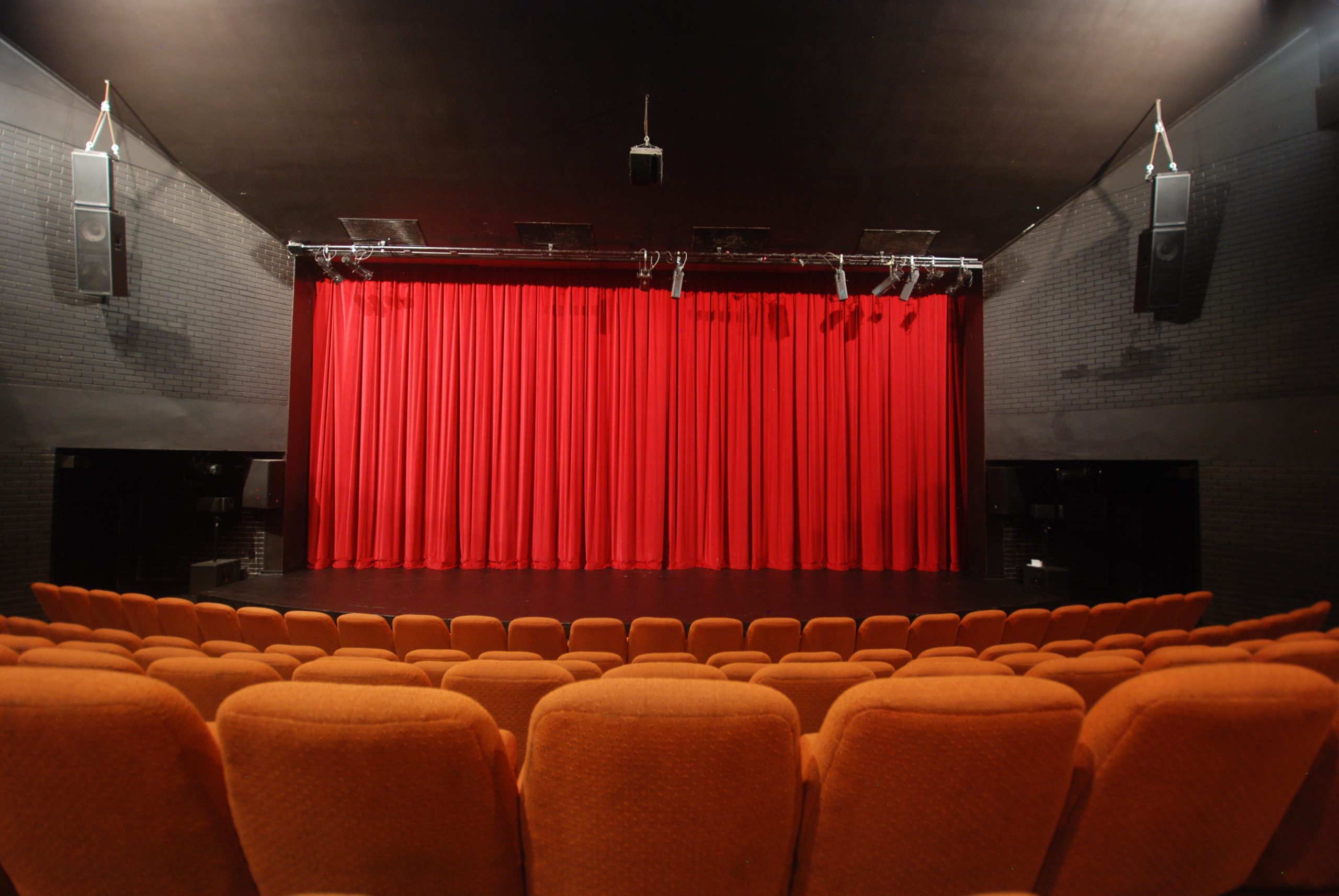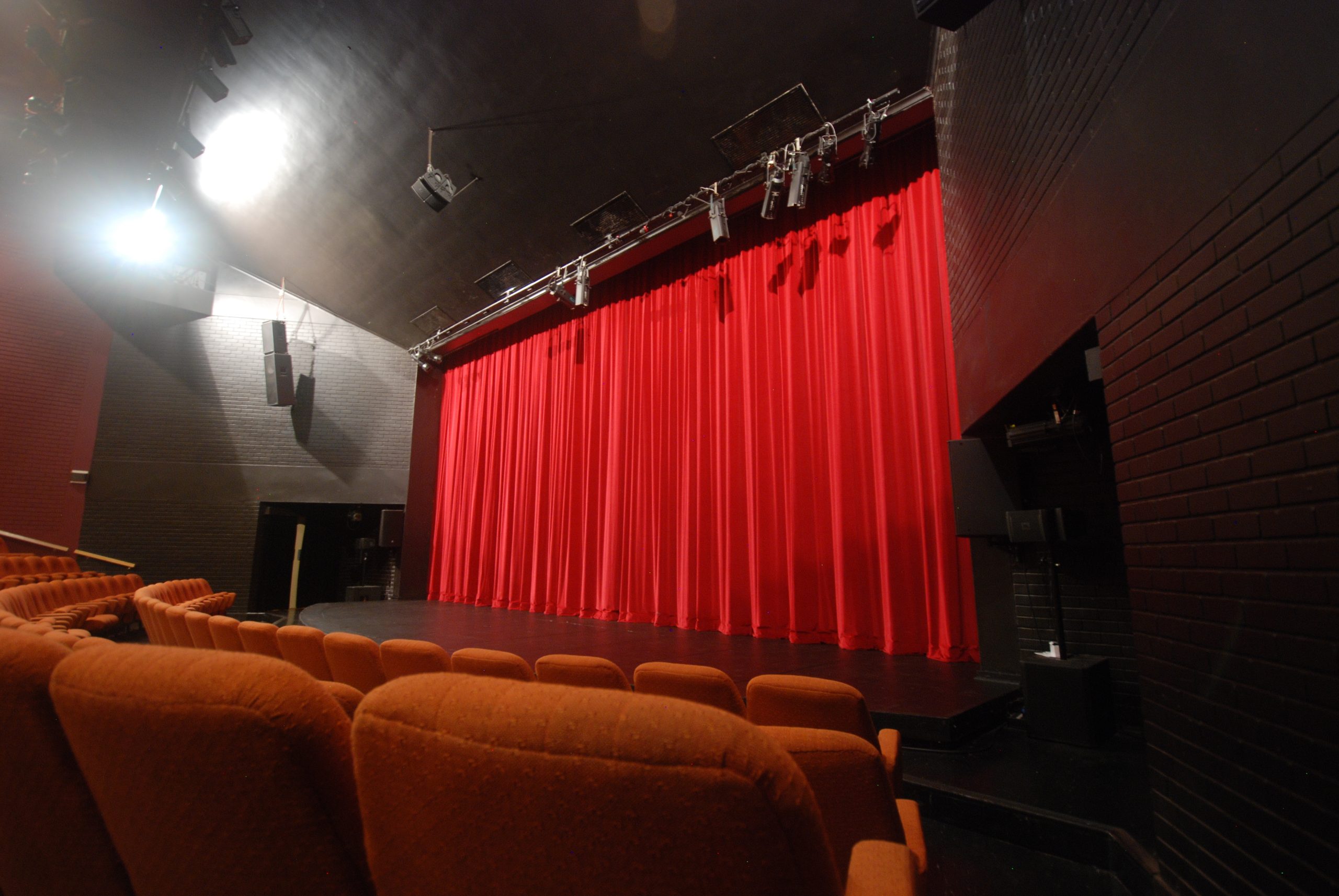 J&C Joel manufactured and installed lustrous yet durable claret Duchess (VELH004) front of house curtains lined with black Sateen Lining (LIN003) matching the theatre’s decor.