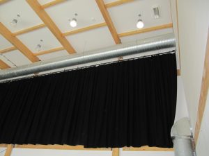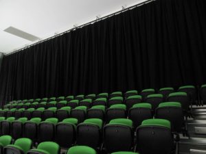 J&C Joel was approached to improve the acoustics at the iCon Centre for environmental Innovation in Daventry. We manufactured Wool Serge 565 (WS090) perimeter curtains for the iCon Centre’s conference hall. These drapes were made to drop from the ceiling to the tops of the windows and doors, effectively masking the walls on either side of the hall’s concertina seating.