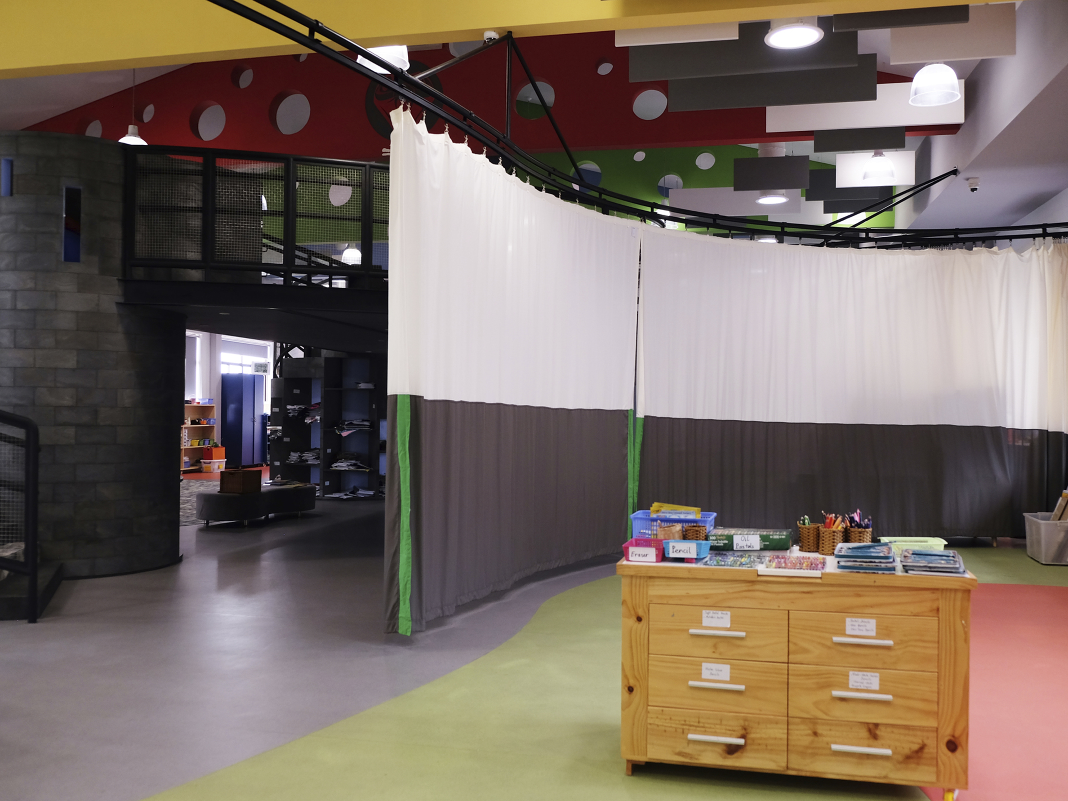Each track and drape system was installed to act as a classroom divider, creating a flexible workspace for the students. With the support of a local contractor, J&C Joel was tasked with the initial design of the project- but this was not without its challenges.
