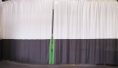 Each drape was manufactured in proportion to the size of the track system, from which it was hung, with a drop of 3m. The drapes were bi-parting at the centre which meant there was only a small gap between them. Between each bi-parting side of the drape, chromakey green Canvas was attached using the same coloured Hook and Loop Fasteners. This tied in perfectly with the colour scheme of the venue and added a finishing touch.