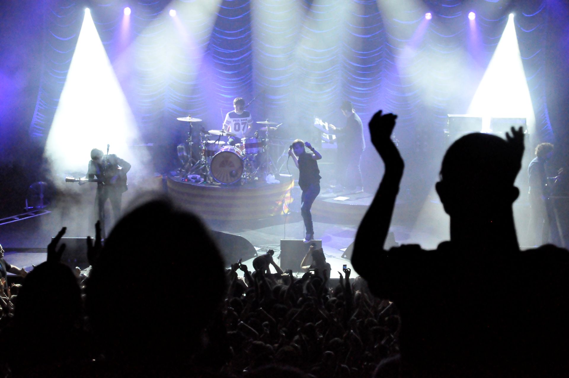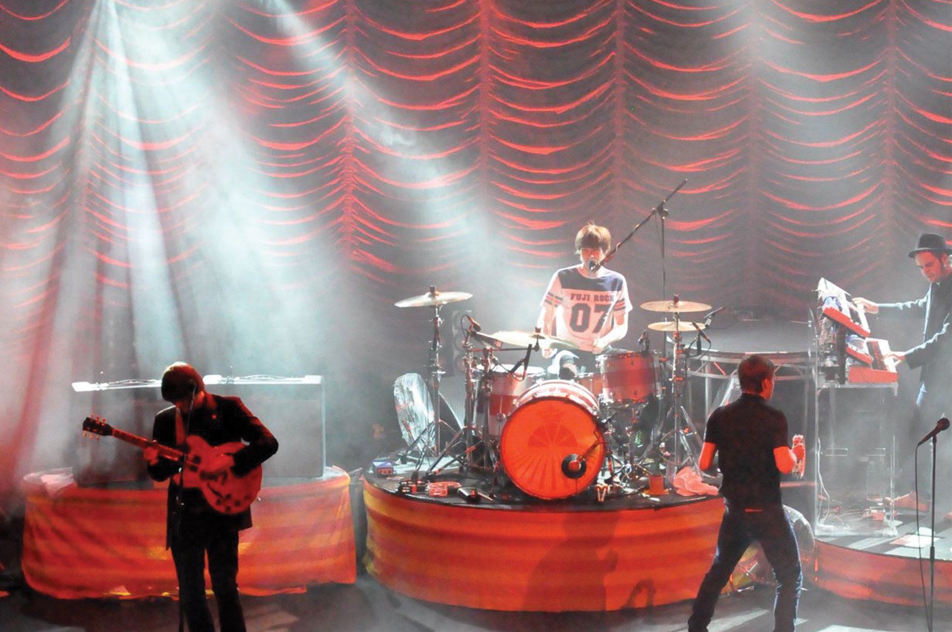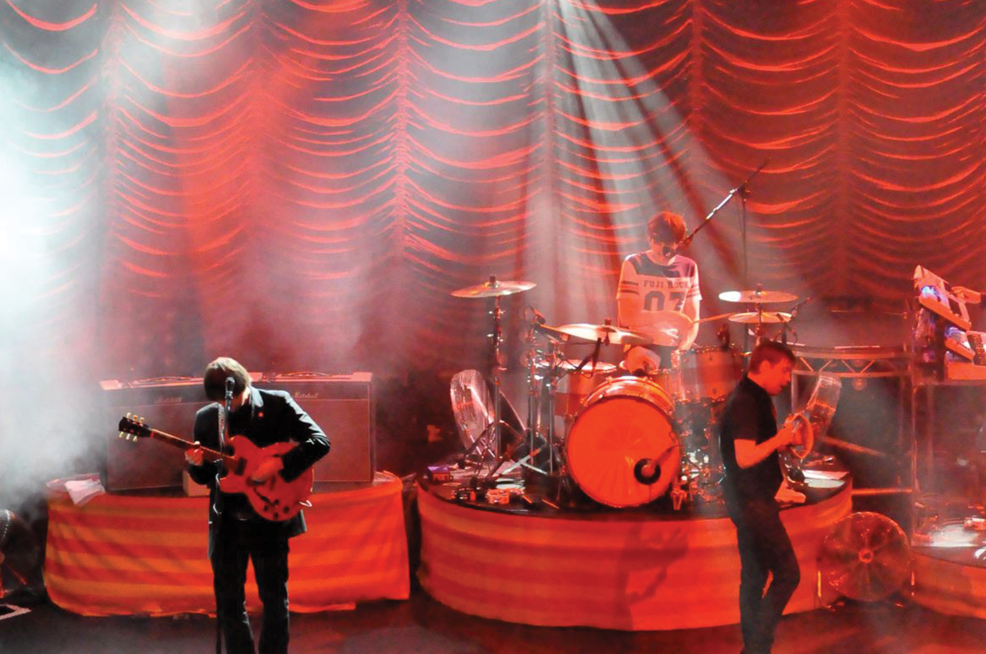 In support of the Kaiser Chiefs’ UK Tour, J&C Joel was commissioned to manufacture a bespoke Austrian curtain. This acted as the backdrop for the stage. Lighting Designer, Richard Larkum, chose the curtain and selected a silver Trevira CS Silk. A fabric that is known for its refined appearance in lighting performances.