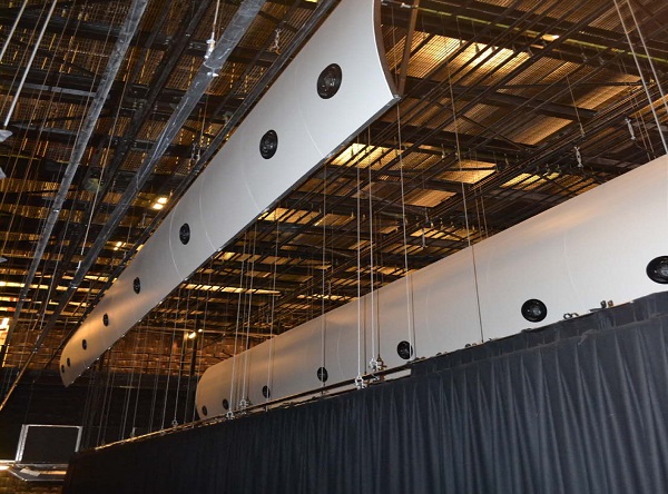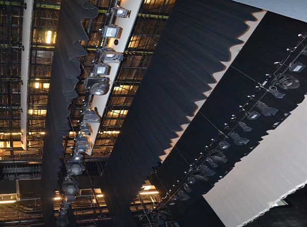 A total of 55 suspension bars for lighting, scenery and stage drapery were installed above the auditorium’s stage, 22 of which are powered by motorised hoists capable of operating at a speed of 0.6 metres per second. A further 20 suspension bars were installed which are raised and lowered using a seven-line manual counterweight system, each set with a safe working load of 750kg.