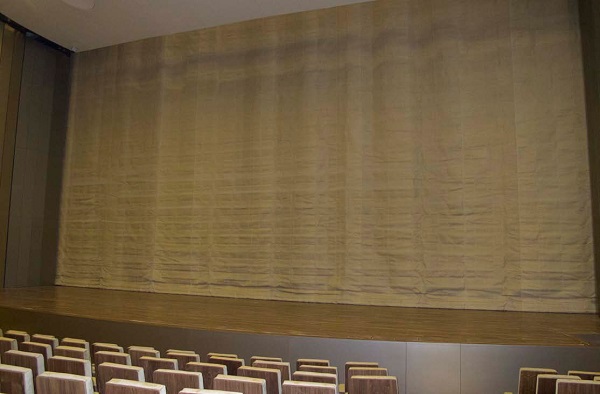 The venue’s Front of House Curtains were manufactured from a grey Duchess Velvet (VELH041), custom dyed to match the colour of the hall’s architectural features. These were suspended from a motorised Unibeam track capable of operating at speeds of up to 1.5 metres per second. Stage masking curtains were manufactured from black Wool Serge 420 (WS001) and hung from 12 dead-hung suspension bars above the stage floor.